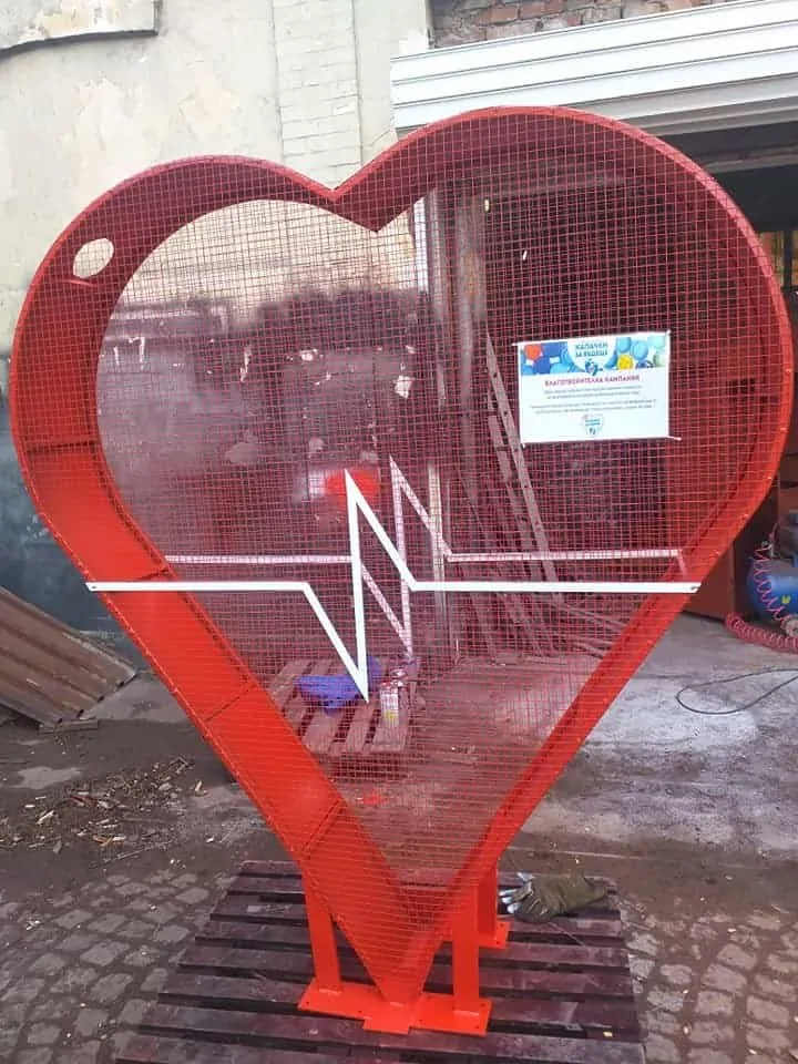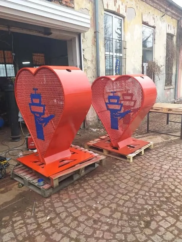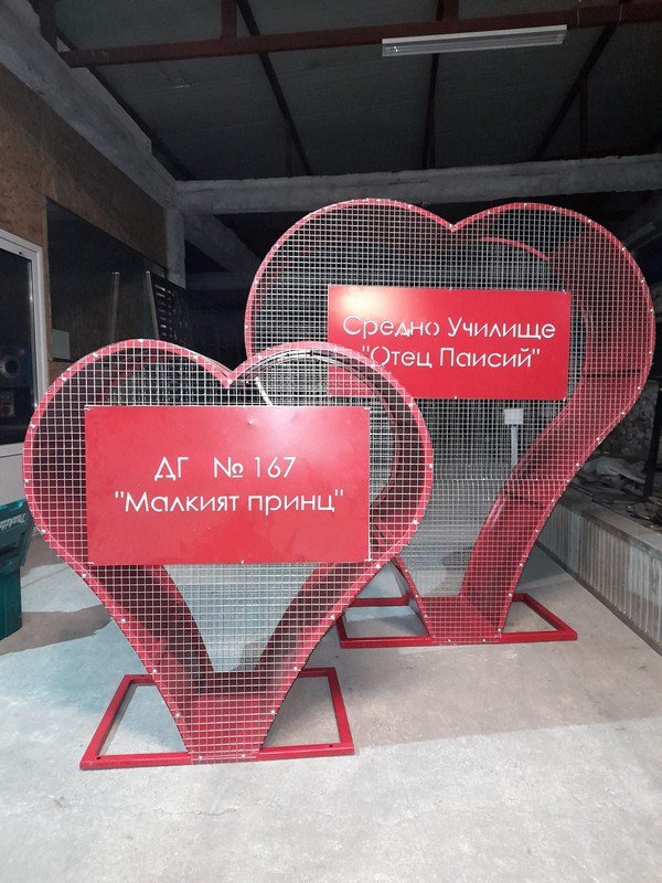Ил Метал ЕООД е отдадена на благотворителната кампания “КАПАЧКИ ЗА БЪДЕЩЕ“. От всяко изработено сърце, даряваме част от сумата по сметка на фондацията. Изработваме метални контейнери, тип “Сърце“ на територията на цялата страна, във всякакви размери. Боядисани са в цвят, избран от клиента. Предоставяме възможност, за поставяне на лазарно изрязано лого на дадена фирма или организация. Сърцата са изработени от профил, гладка ламарина, мрежа, пулс или лого, вратичка отдолу с панти и резе, един или два отвора в горната си част (кръг/правоъгълник) и метална стойка/основа, придаваща устойчивост на готовото сърце. По желание и възможност на избрания терен за поставяне, стойката се анкерира. Притежаваме, професионална машина за огъване на профили, позволяваща изработените от нас сърца да бъдат с идеална форма.